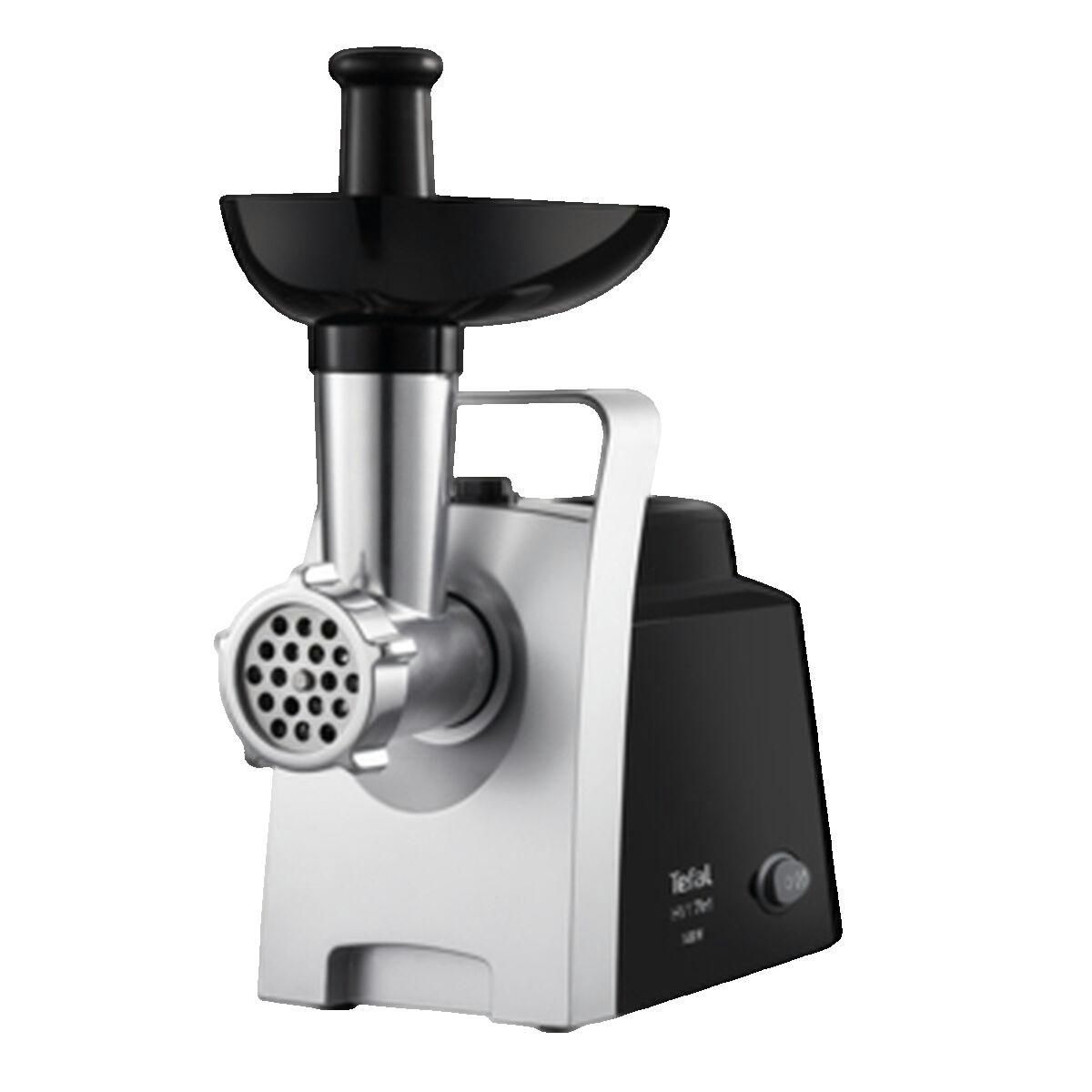 Le hachoir électrique Tefal NE108831 est un appareil performant conçu pour la cuisine domestique. Avec une puissance maximale de 1400 W, il permet de broyer jusqu'à 1,7 kg par minute, facilitant la préparation de sauces, viandes et garnitures. Il est équipé de trous de diamètre 3 mm et 6 mm, d'une f