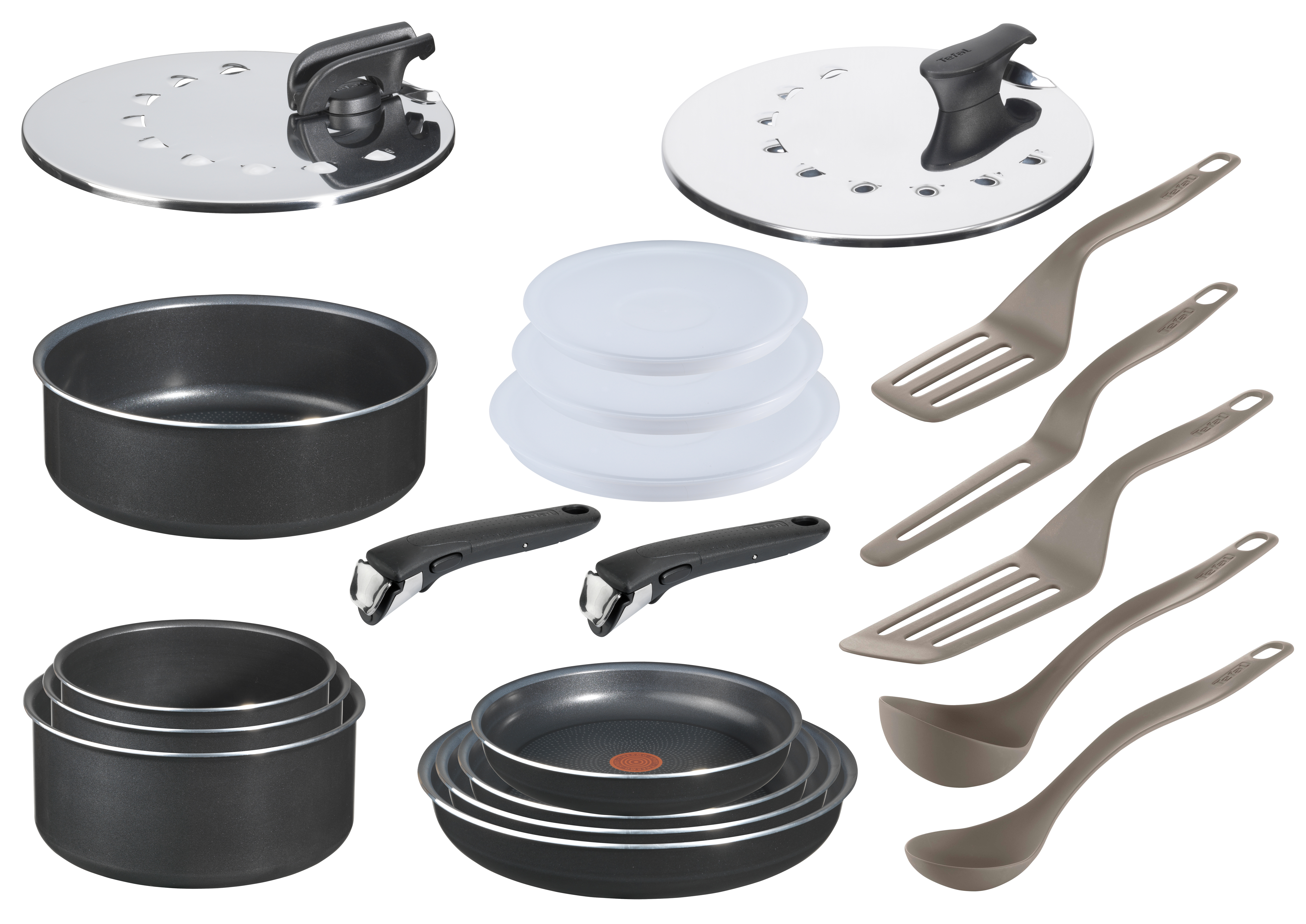 En savoir +Set 20 pièces INGENIO 5 noir, un ensemble avec poignée amovible pour passer de la table de cuisson au four en 1 seul clic. Son intérieur antiadhésif garantie une cuisson saine, sans ajout de matières grasses. Poignée garantie 10 ans.