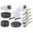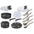 - 1 casserole 16 cm- 1 casserole 18 cm- 1 casserole 20 cm- 1 poêle 20 cm- 1 poêle 24 cm- 1 poêle 26 cm- 1 poêle 28 cm- 1 sauteuse 24 cm- 1 couvercle anti-gras 20 à 28 cm- 3 couvercles hermétiques 16/18 et 20 cm- 1 couvercle égouttoir 14 à 20 cm- 1 spatule longue ENJOY cassonade- 1 spatule à crêpe ENJOY cassonade- 1 louche ENJOY cassonade- 1 cuillère ENJOY cassonade- 1 spatule à angle ENJOY cassonade- 2 poignées CLASSIC