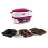 Revêtement anti-adhésif, Thermostat réglable, 5 Programmes, Moules et grille compatibles lave-vaisselle, Livré avec 1 moule de 6 muffins, 1 moule de 6 mini-cakes, 1 moule grand gâteau et 1 livre de recettes.