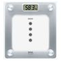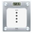 Plateau en verre, écran LCD, 4 mémoires utilisateurs, capacité de 160 kg, graduation de 0,1 kg, démarrage et arrêt automatiques, argent