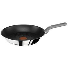 Vous en avez assez des poêles qui attachent ? Voici la poêle TEFAL en inox, compatible avec tous types de feux, y compris l'induction. Revêtement intérieur antiadhésif, avec possibilité de cuisiner sans matière grasse. Fond triple couche avec disque en aluminium épais et indéformable, diffusant la chaleur de manière homogène. Poignée en inox riveté avec manchon en silicone, alliant design, solidité et sécurité. Cette poêle TEFAL est compatible avec le nettoyage en lave-vaisselle.