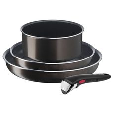 Set 2 poêles ø22 et ø26 cm, 1 casserole ø16 cm et une poignée amovible. Revêtement antiadhésif , compatible lave-vaisselle.