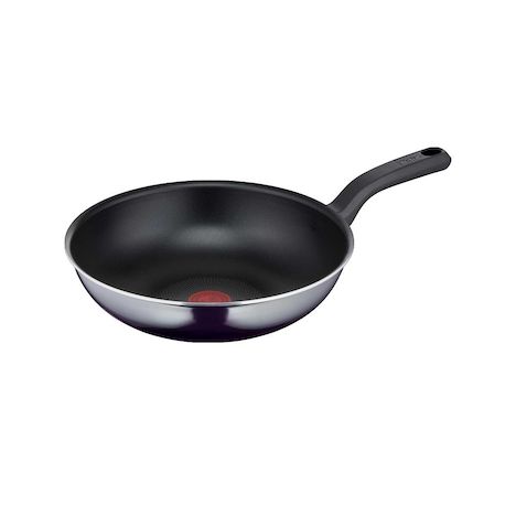 Découvrez le Wok Tefal en aluminium renforcé de titane de 28 cm, d'un élégant noir avec effet miroir. Ce wok est équipé d'un revêtement antiadhésif en titane pour faciliter la cuisson et le nettoyage. Il est doté de la technologie Thermo-Spot qui change de couleur pour indiquer le moment idéal pour