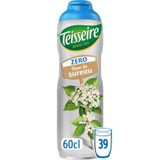 Boisson concentrée à la fleur de sureau aromatisée à diluer, avec édulcorants.