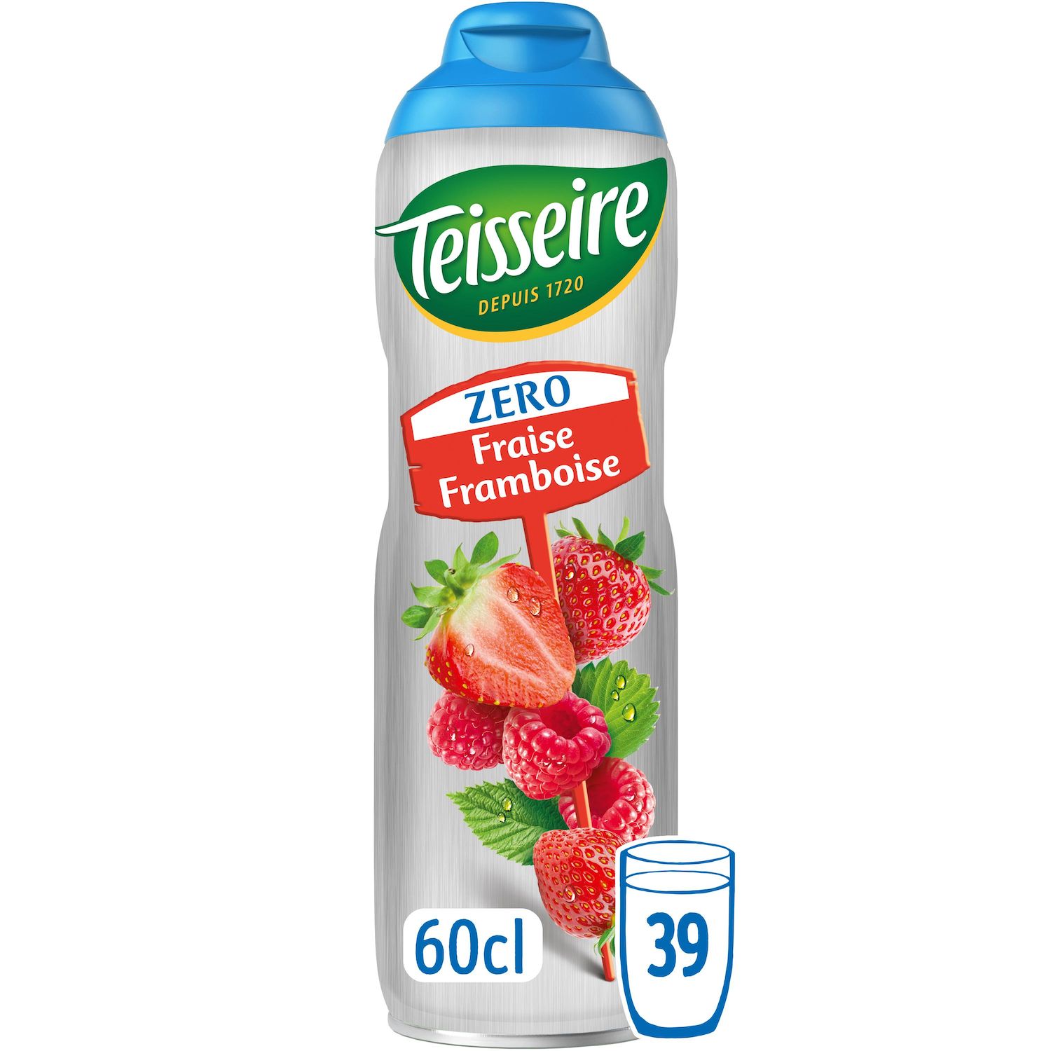 Boisson concentrée à la fraise et à la framboise aromatisée à diluer, avec édulcorants.