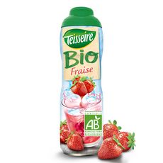 "Retrouvez toute la gourmandise des sirops de fruits ou plantes Teisseire en version Bio sirop de FRAISE BIO