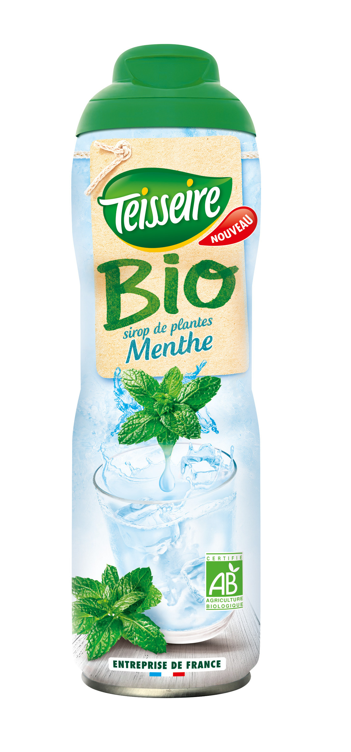 "Retrouvez toute la gourmandise des sirops de fruits ou plantes Teisseire en version Bio sirop de menthe bio