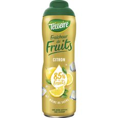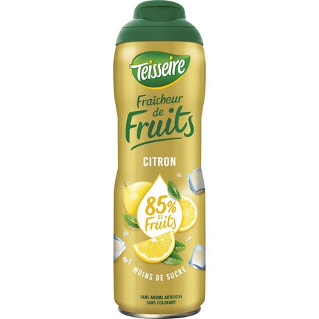 Sirop de citron Offrez-vous un plaisir désaltérant au vrai goût du fruit grâce au sirop Teisseire, ses 85% de fruits et sa juste dose de sucre.