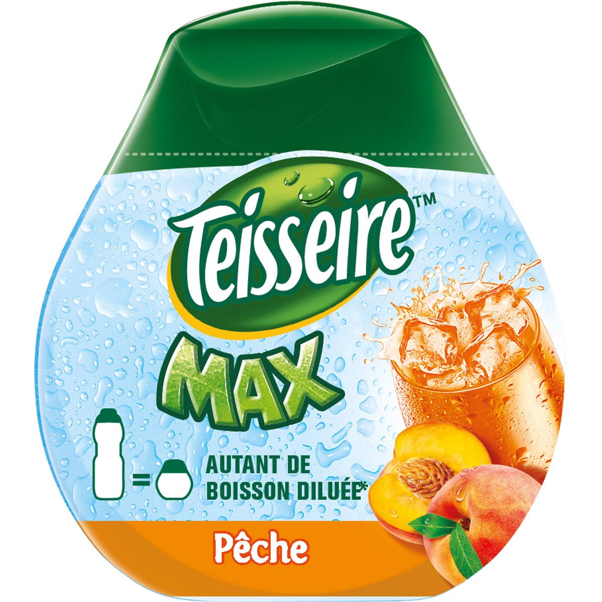 Découvrez Teisseire Max, tout le bon goût des sirops Teisseire concentré en format mini boisson ultra concentrée à la pêche à diluer, avec édulcorants