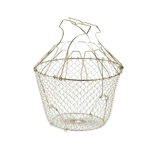 Panier à salade 22.5 cm pliant. En inox. Avec raidisseurs. Fil inox tressé. Ne tient pas de place au rangement .