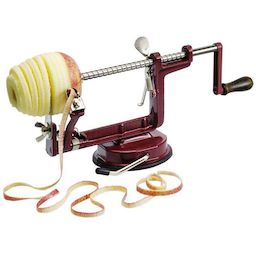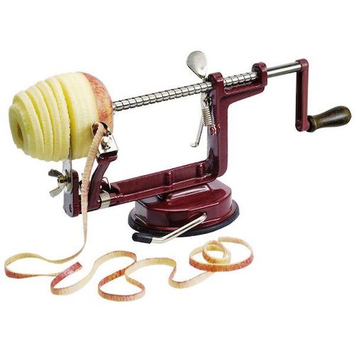 Tellier N4232T Pèle-pomme Lourd - Dos pommes épluchées et coupées parfaitement et rapidement pour préparer vos tartes ou compotes ! - Ce pèle-pommes permettra d'éplucher. de vider et de couper en tranches régulières votre pomme en une seule opération ! - Piquez la pomme sur l'axe du pèle-pomme. tournez la manivelle et votre pomme est prête à être dégustée - Idéal pour réaliser des tartes aux pommes parfaites en un clin d??il ou pour faire manger des fruits aux enfants de façon ludique - Efficace. ingénieux. facile et rapide - Vous pourrez aussi l'adapter aux poires ou même aux pommes de terre - Corps en fonte d'acier peint époxy - Lames en inox - Tranche 4 mm - Fixation par ventouse pour une meilleure stabilité sur votre table ou plan de travail - Coloris Rouge Bordeaux - Poids 0.9 kg.