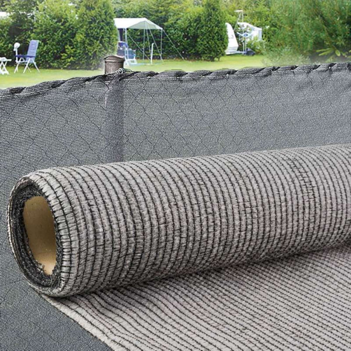 Brise vue en polyéthylène gris 150 g/m2 pour une finition de grande qualité. Traité anti U-V. Bords renforcés. Livré en rouleau. Opacité 80%. Dimensions et poids, tolérance 5%.