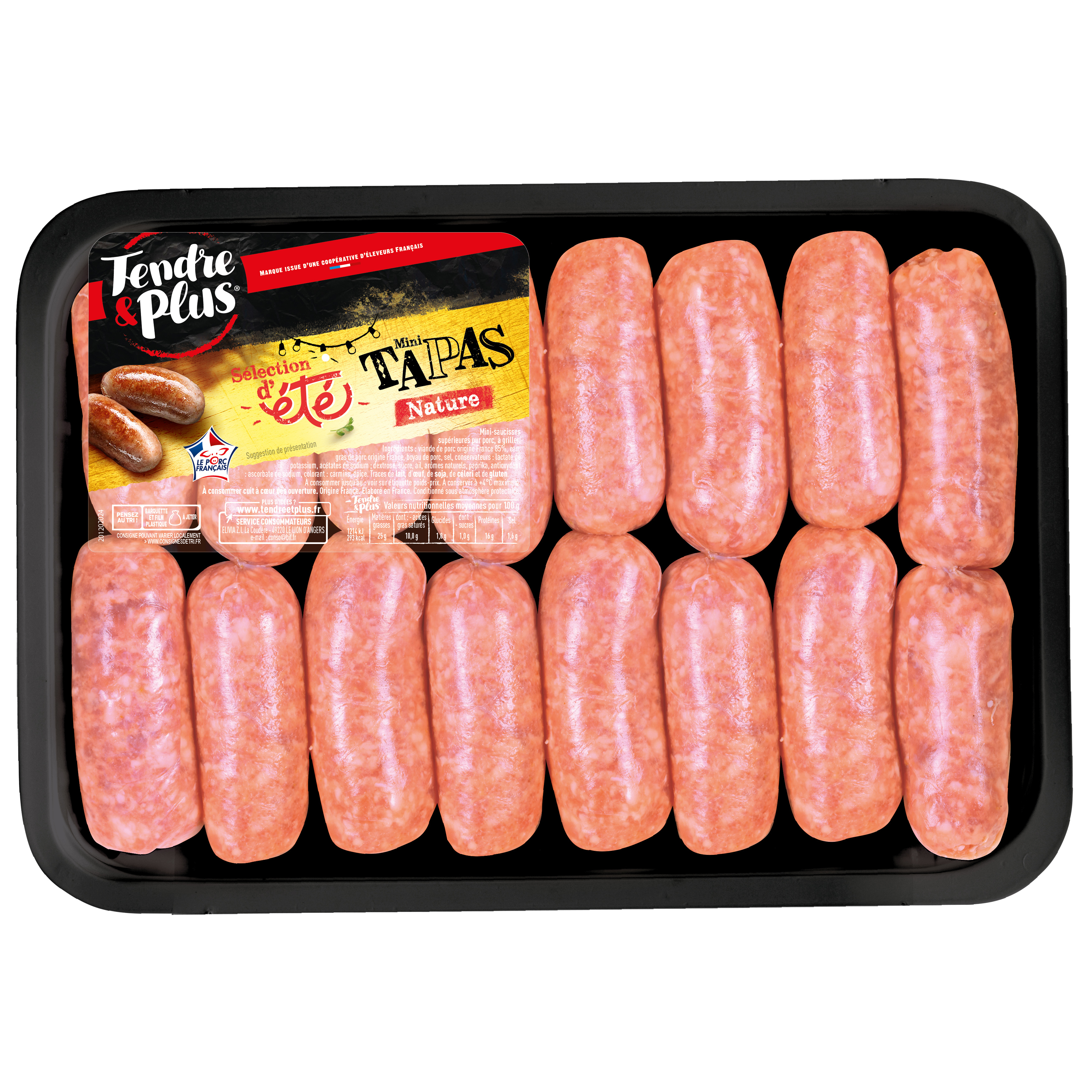 Mini-saucisses supérieures pur porc, à griller.