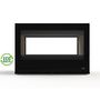- Composants : 2 portes avec verre clair - façade acier noir - 1 régulation d'air - ventilateur silencieux tangentiel avec position «, stop », - base + murs du foyer en vermiculite.