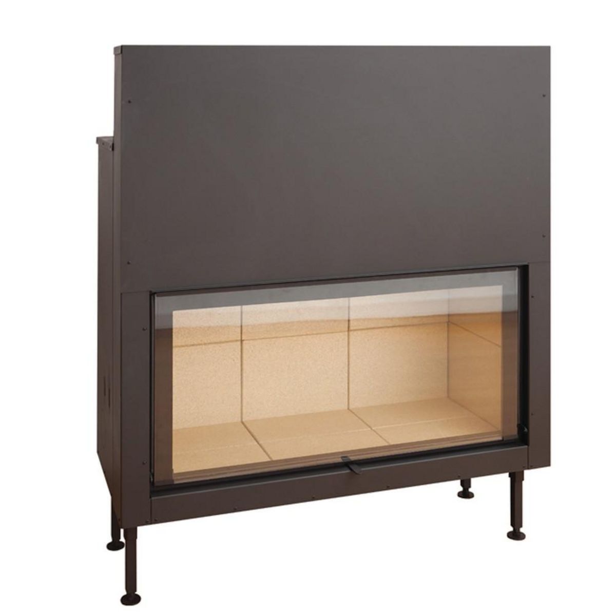 INSERT Spécial Large Vision modèle C-1150ES porte Guillotine avec puissance de 16kW Marque TERMOFOC, foyer Acier Carbone et Vermiculite Le foyer avec porte escamotable ou «,guillotine», se distingue par leur système d'ouverture de porte vers le haut innovant qui permet avec une structure v