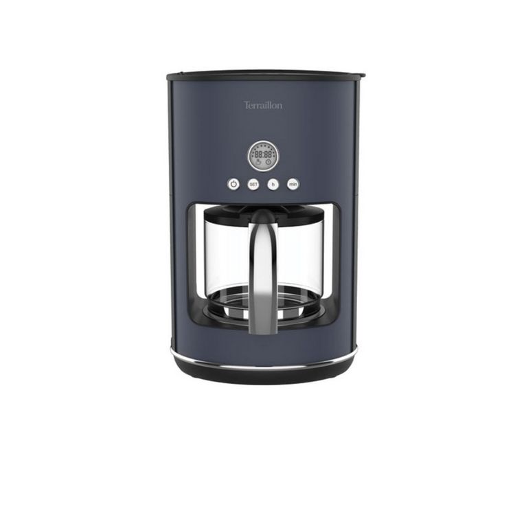 Terraillon 15439 Cafetière filtre Terraillon 15439 programmable 10-12 tasses. Vous pouvez programmer la préparation de votre café jusqu'à 24 heures à l'avance pour qu'il soit prêt quand vous le souhaitez. Réveillez-vous chaque matin avec l'arôme délicieux du café fraîchement préparé. La fonction ant