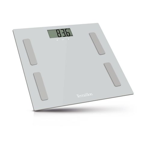 Découvrez le pèse personne impédancemètre Terrailon Body Connect en gris. Avec une capacité maximale de 160 kg, une graduation de 100 g et la fonction Bluetooth, il vous permet de surveiller votre poids et votre composition corporelle. Pratique, il peut enregistrer jusqu'à 8 utilisateurs et calculer l'indice de masse corporelle (IMC).
