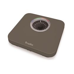 Terraillon BMA73207BR Pèse-personne mécanique TERAILLON BMA73207BR. - Couleur : Taupe.Type de pesée : Mécanique.Finition du plateau : Plastique.Taille du plateau : 29 x 27 cm..Capacité Max : 150 kg.Graduation : 1 kg.IMC : Oui.Type : Cadran.Diamètre : 11cm .Piles : Non.Poids Net/ Brut : 1,9 / 2,4 kg.