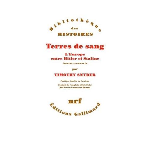 Voici l'histoire d'un meurtre politique de masse. C'est par ces mots que Timothy Snyder entame le récit de la catastrophe au cours de laquelle, entre 1933 et 1945, 14 millions de civils, principalement des femmes, des enfants et des vieillards, ont été tués par l'Allemagne nazie et l'Union soviétique stalinienne. Tous l'ont été dans un même territoire, que l'auteur appelle les terres de sang et qui s'étend de la Pologne centrale à la Russie occidentale en passant par l'Ukraine, la Biélorussie et les pays Baltes. Plus de la moitié d'entre eux sont morts de faim. Deux des plus grands massacres de l'histoire, les famines préméditées par Staline, principalement en Ukraine, au début des années 1930, qui ont fait plus de 4 millions de morts, et l'affamement par Hitler de quelque 3 millions et demi de prisonniers de guerre soviétiques, au début des années 1940, ont été perpétrés ainsi. Tous deux ont précédé l'Holocauste et, selon Timothy Snyder, aident à le comprendre. Les victimes des deux régimes ont laissé de nombreuses traces. Tombées après la guerre de l'autre côté du rideau de fer, elles sont restées dans l'oubli pendant plus de soixante ans et ne sont revenues au jour qu'à la faveur de la chute du communisme. Timothy Snyder en offre pour la première fois une synthèse si puissante qu'un nouveau chapitre de l'histoire de l'Europe paraît s'ouvrir avec lui. Ce faisant, il redonne humanité et dignité à ces millions de morts privés de sépultures et comme effacés du souvenir des vivants. Par sa démarche novatrice, centrée sur le territoire, son approche globale, la masse de langues mobilisées, de sources dépouillées, l'idée même que les morts ne s'additionnent pas, Timothy Snyder offre ici un grand livre d'histoire en même temps qu'une méditation sur l'écriture de l'histoire.