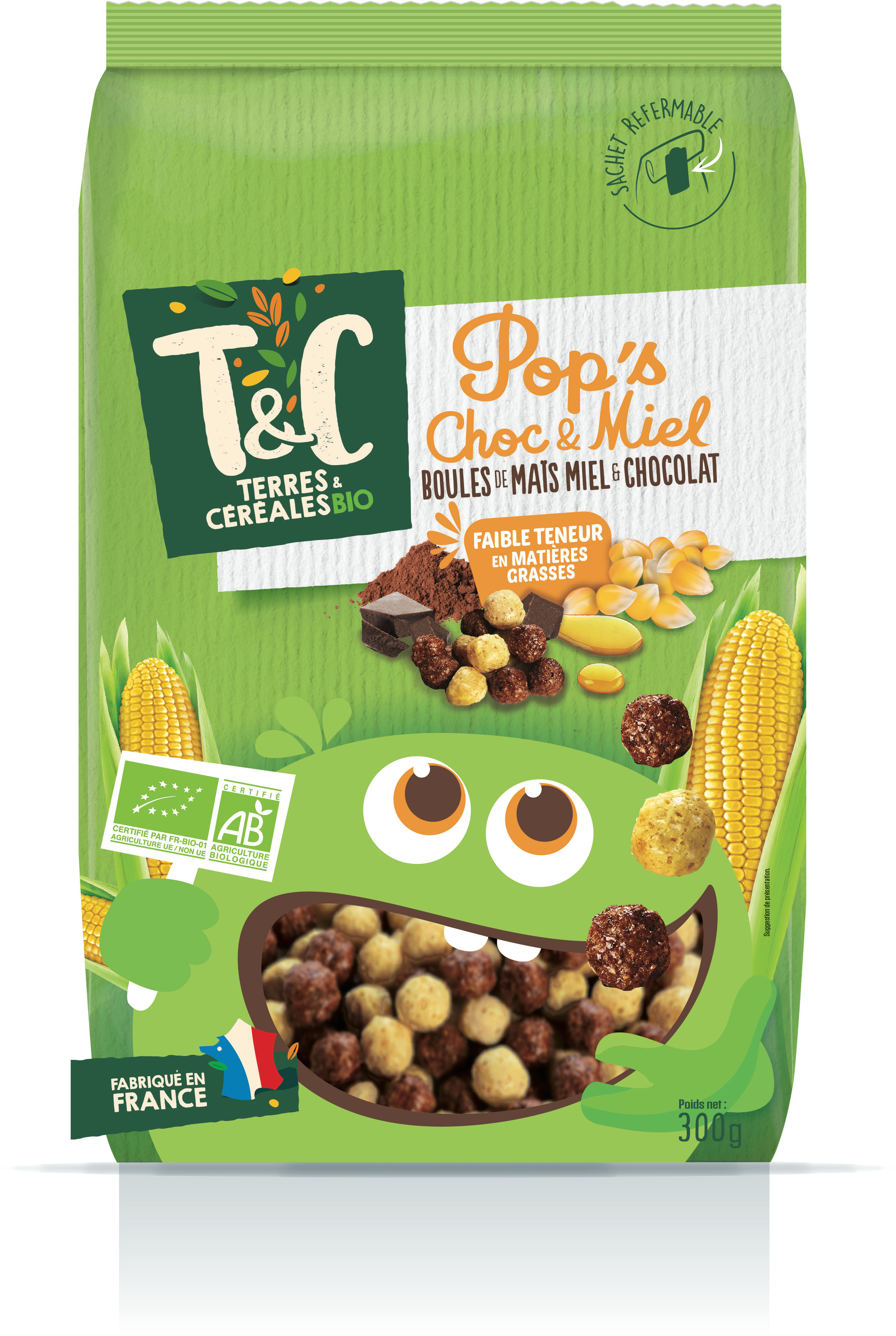 Céréales au miel et au chocolat issues de l'agriculture biologique.