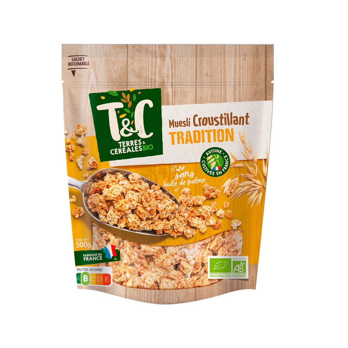 Mélange de céréales croustillantes issu de l'agriculture biologique.