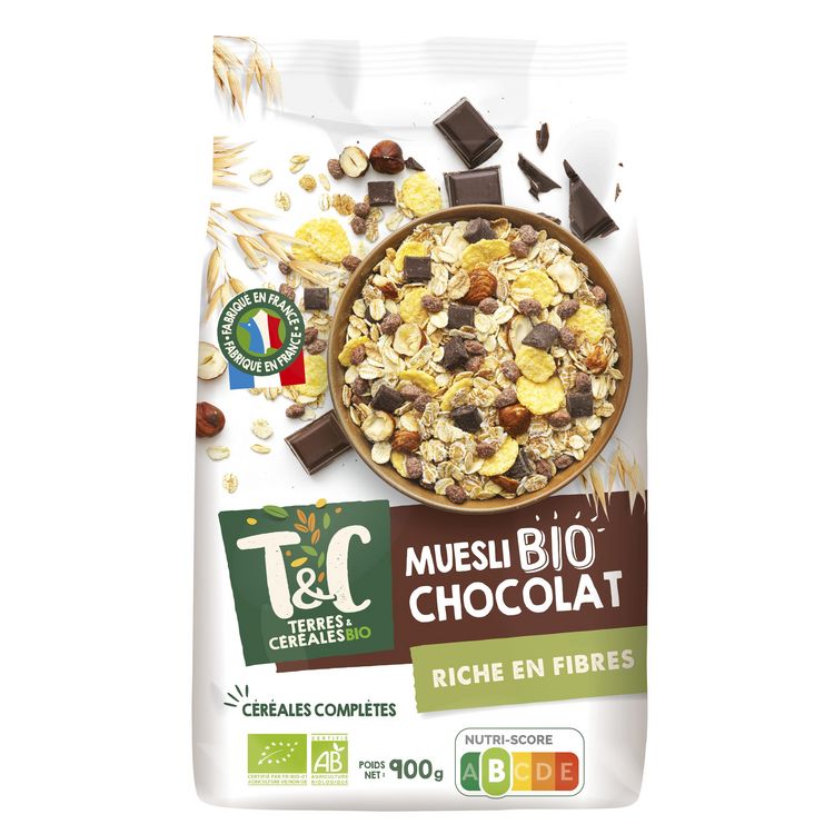 Mélange de céréales et de chocolats issu de l'agriculture biologique