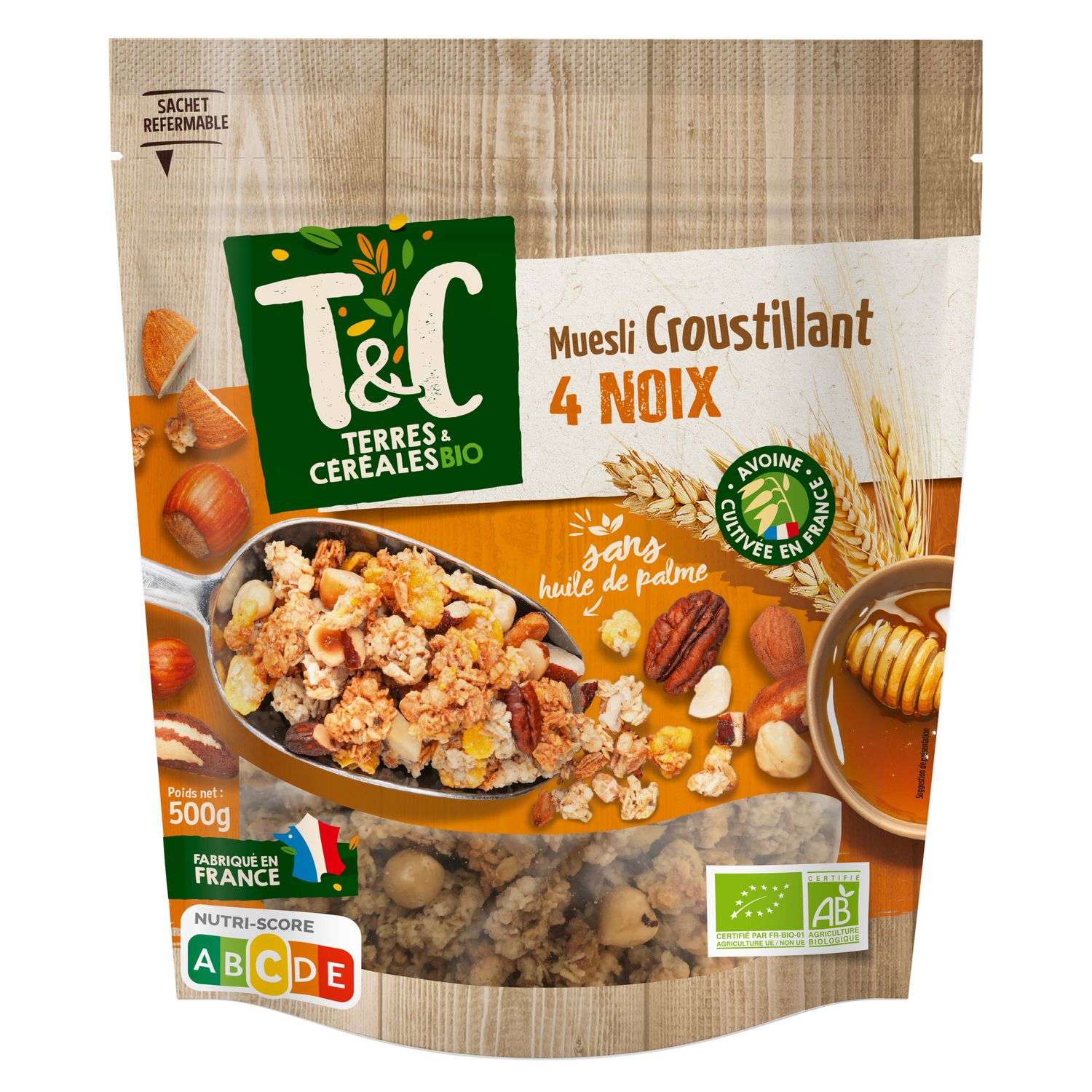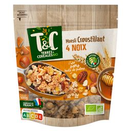 Mélange de céréales croustillantes et de noix issu de l'agriculture biologique.