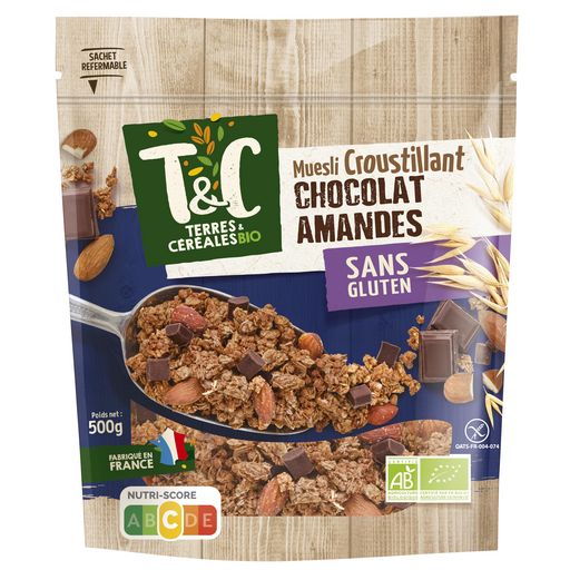 Muesli croustillant bio au chocolat et aux amandes sans gluten