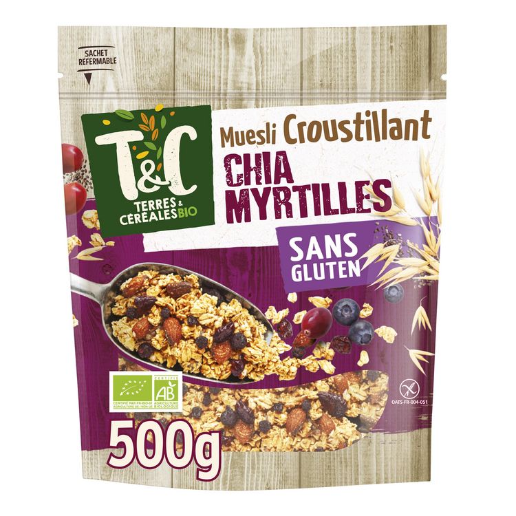 Une délicieuse recette élaborée à partir d'avoine garantie sans gluten, de myrtilles et de graines de chia.