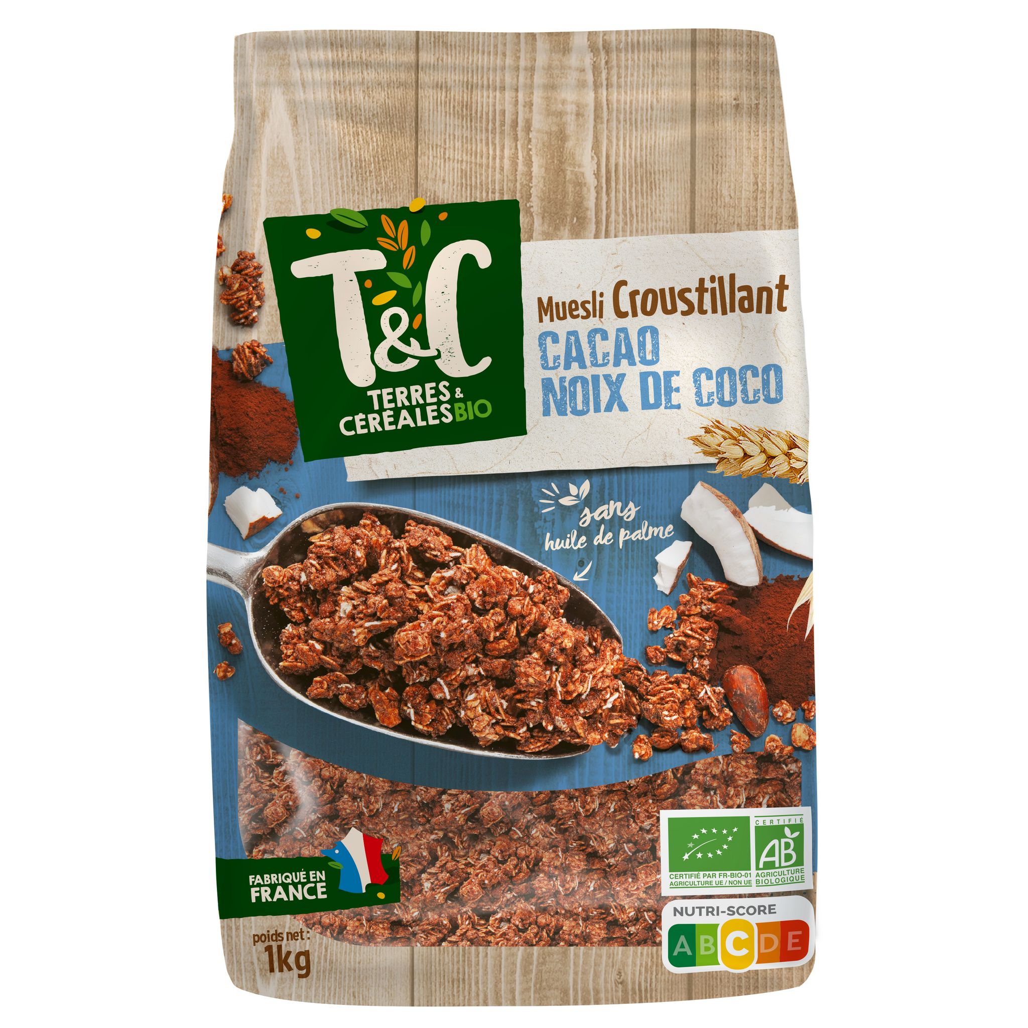 Muesli de céréales croustillantes cacao et noix de coco bio