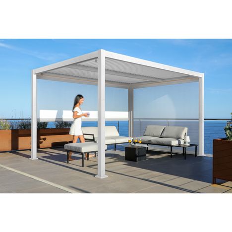 Pergola bioclimatique en aluminium 4x3 M BOULEAU - Blanc cérusé