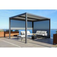 Pergola bioclimatique en aluminium 4x3M avec éclairage LEDS par énergie solaire+ stores LAVANDE - Gris