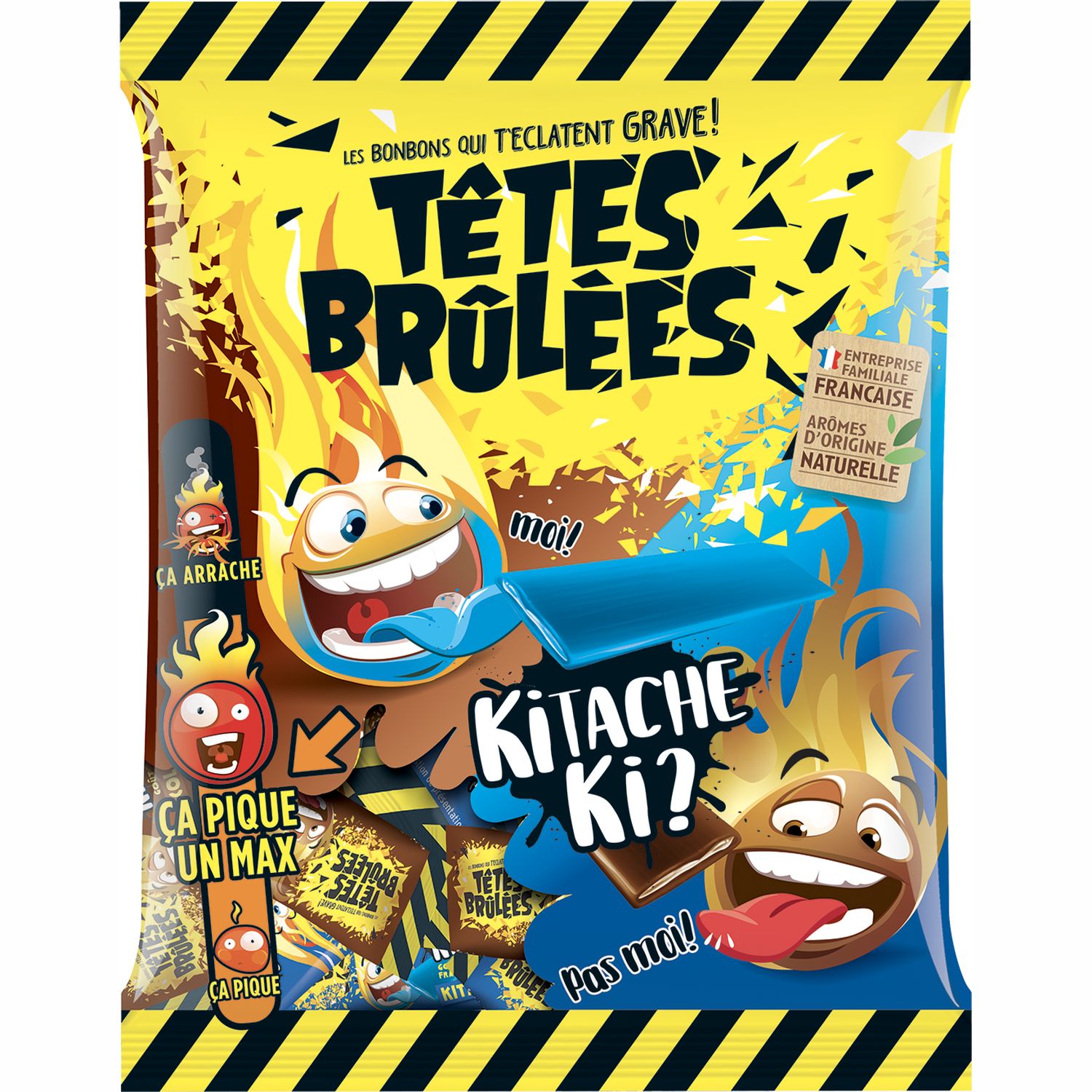 Têtes Brûlées c'est du fun des sensations, des délires entre potes et un max de plaisir. Les Têtes Brûlées existent sous différentes formes : des billes, des barres, des gélifiés, sous différents parfums : cola, fraise, pomme, framboise , yuzu .. et sous différents formats : petits ou grands sachets et des seaux.