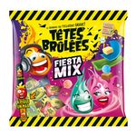 Sirop de glucose ; sucre ; acidifiants : acide citrique, acide lactique ; graisse végétale (palme, palmiste) ; humectant : sorbitols ; stabilisant : gomme arabique ; maltodextrine ; correcteur d'acidité : citrates de sodium ; colorants : caramel ordinaire, anthocyanes, curcumine, complexes cuivre-chlorophylline, extrait de paprika, bleu brillant FCF ; arômes naturels ; arômes ; émulsifiants : sucroesters d'acides gras, lécithine de tournesol.