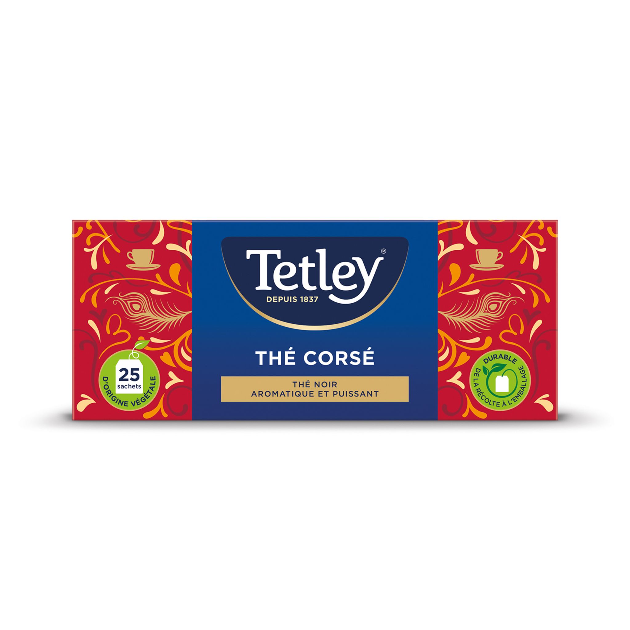 Le thé Corsé de Tetley est un parfait mariage de thés noirs vigoureux et épicés. Un thé fort en goût pour des réveils toniques.