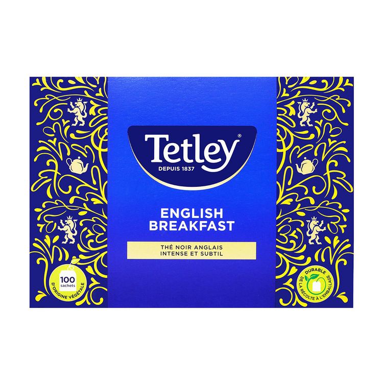 L'English Breakfast de Tetley est un mélange de thés noirs raffinés pour un arôme riche et corsé. A déguster nature ou avec du lait, dès le petit déjeuner.
