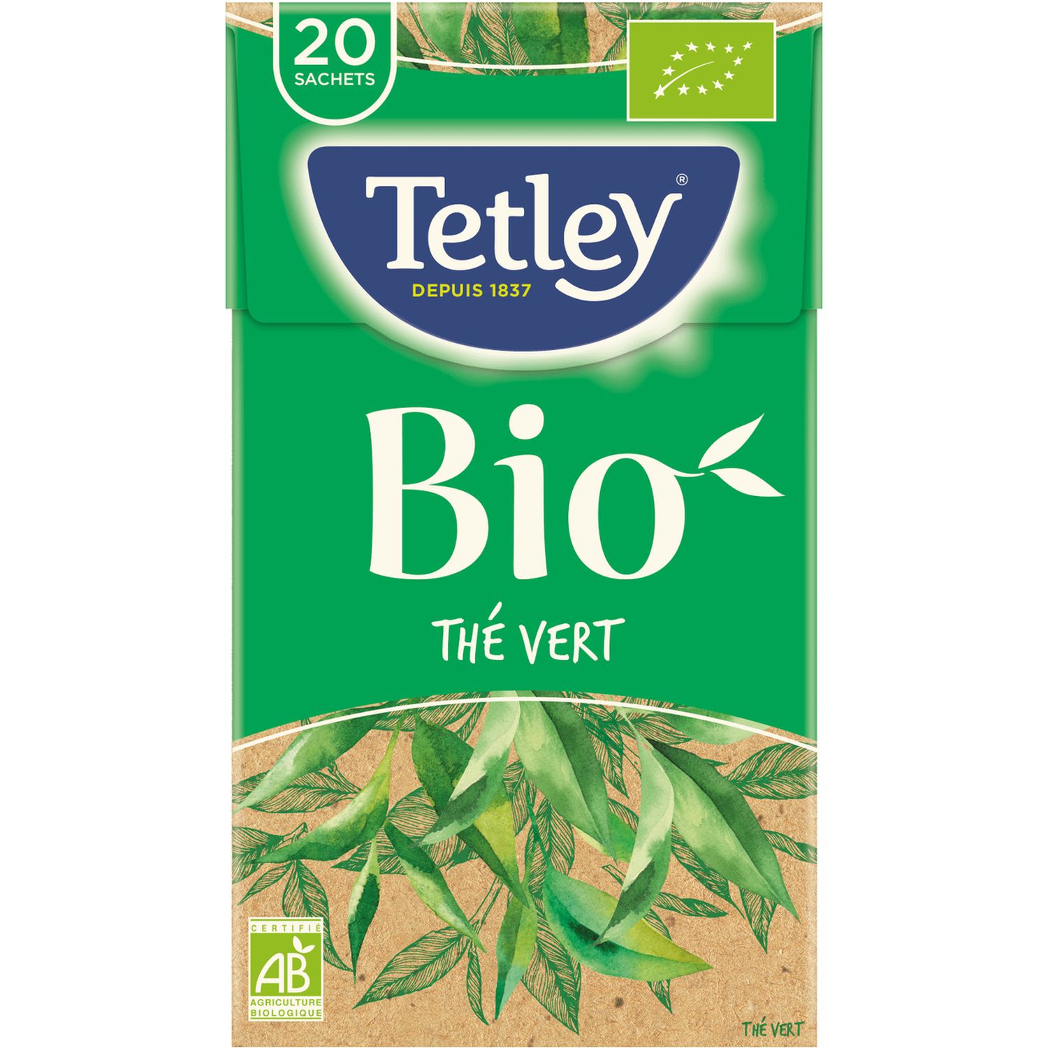 Thé vert biologique(1), (2) 100%(Chine). (1) Issu de l'agriculture biologique. (2) Vérifié Rainforest Alliance.