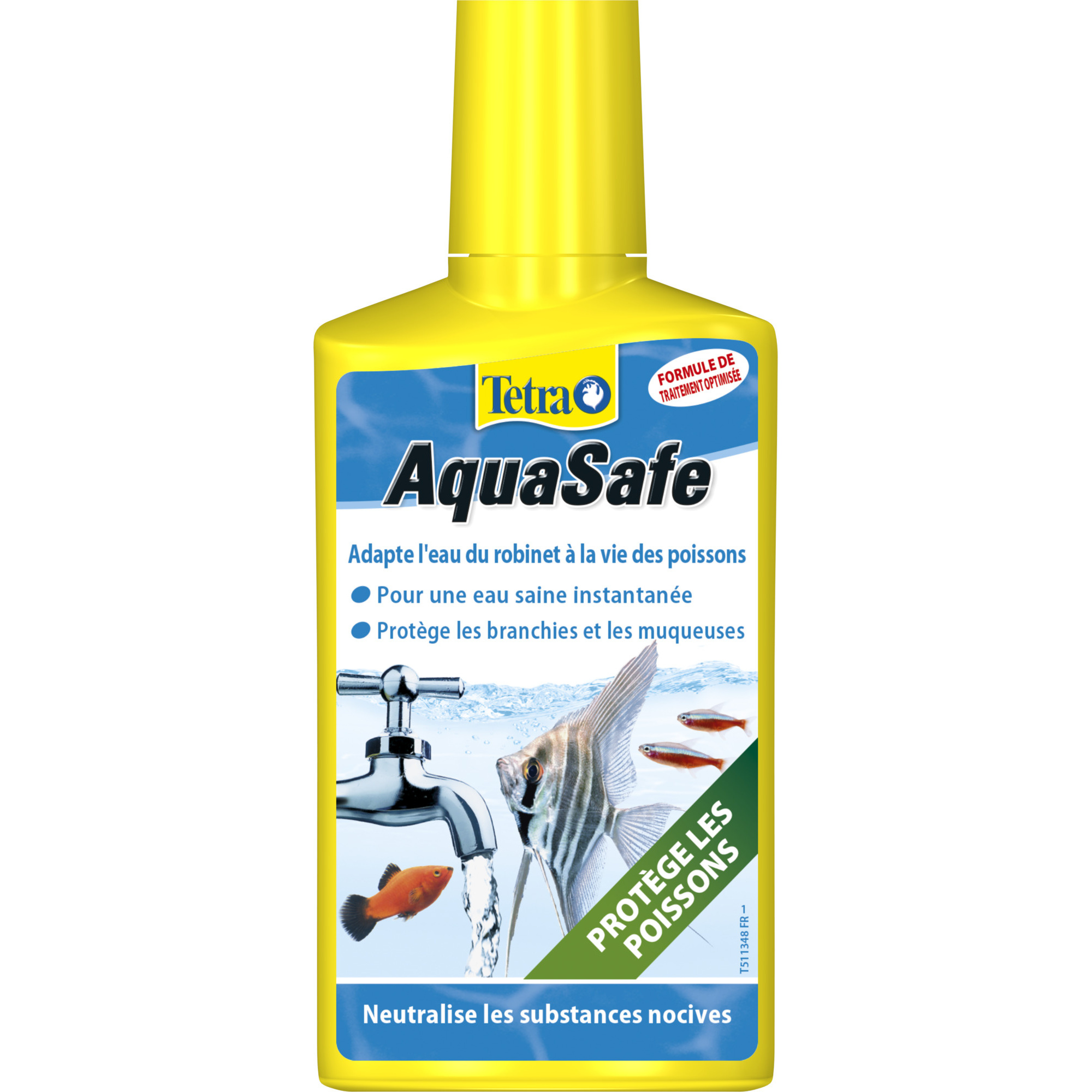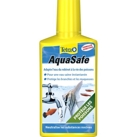 - Grâce à l'ajout d'AquaSafe, les substances nocives pour les poissons contenues dans l'eau du robinet sont neutralisées instantanément : le chlore et les chloramines sont éliminés, et les métaux lourds comme le cuivre, le zinc et le plomb disparaissent tot