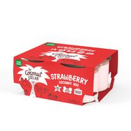 Lait de coco ferment. (85%)(lait de coco, eau de coco, amidon de ma.s modifié, amidon de tapioca modifié, amidon de pomme de terre, gomme de guar, stabilisant : pectine, ar.me naturel, farine de riz, vitamine D2, vitamine B6, vitamine B12, calcium : phosphate tricalcique, ferments), préparation de fraise (15%), (pur.e de fraise (40%), sucre issu de fruits, fibres, eau, amidon de ma.s, colorant : concentré de carotte, concentré de jus de citron, arômes naturels)