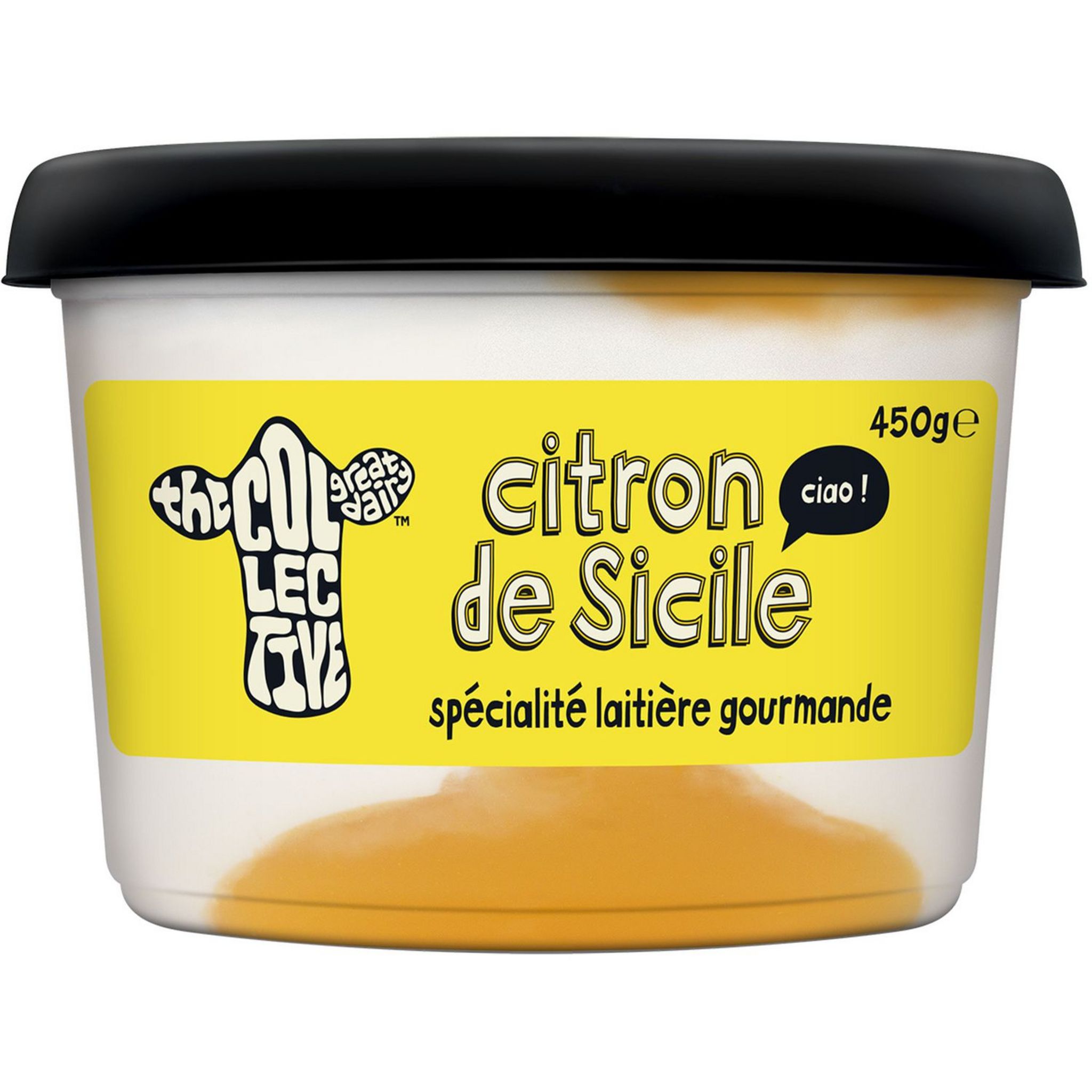 Spécialité laitière au citron, aromatisée "La marque The Collective arrive en France avec ses spécialités laitières aux fruits délicieuses. La double couche de fruits est une offre unique sur le marché et la texture de sa base laitière est onctueuse et crémeuse. Découvrez ses 4 variétés savoureuses et enchantez vos papilles. The Collective c'est pour tous les gourmands, petits et grands.