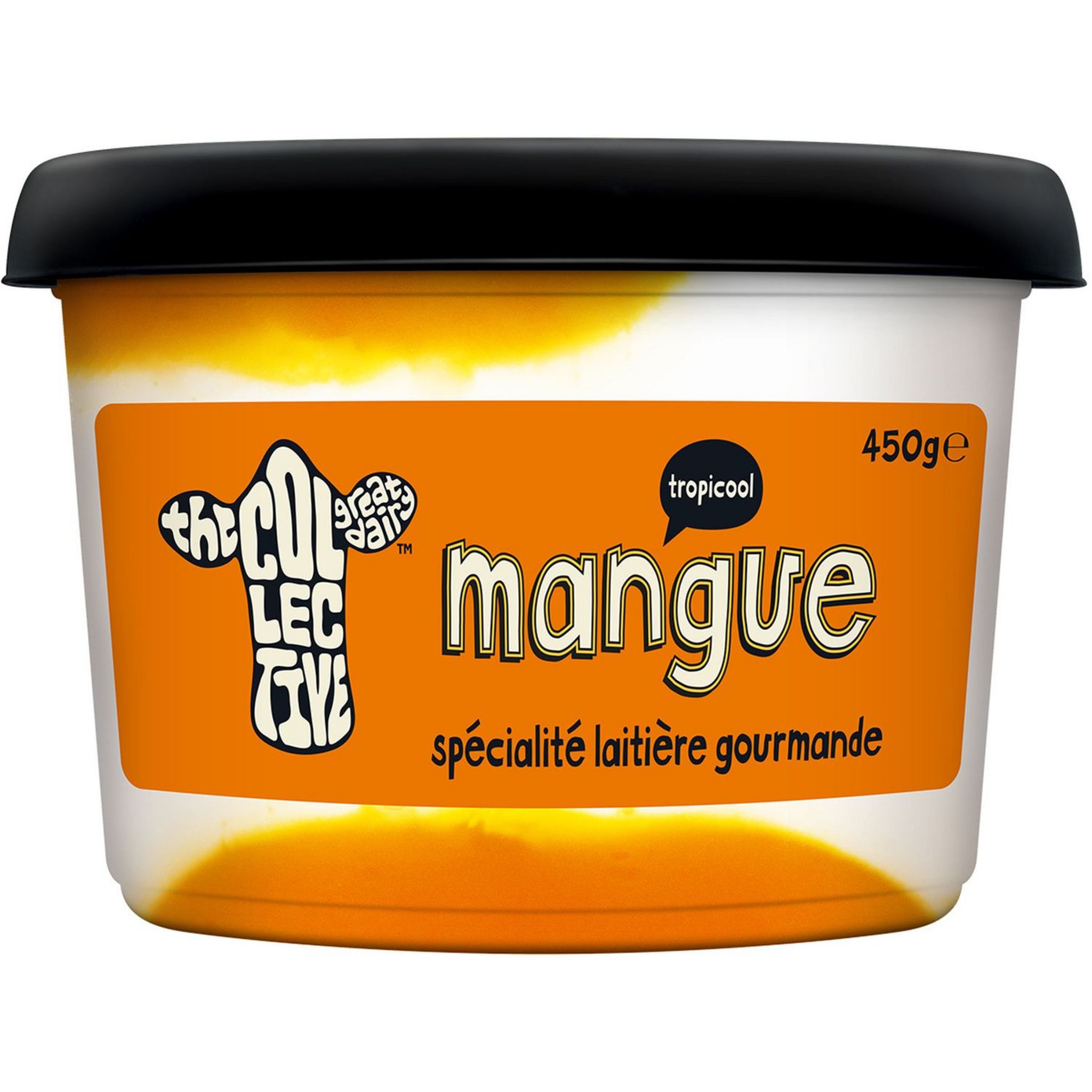 Spécialité laitière à la mangue, aromatisée "La marque The Collective arrive en France avec ses spécialités laitières aux fruits délicieuses. La double couche de fruits est une offre unique sur le marché et la texture de sa base laitière est onctueuse et crémeuse. Découvrez ses 4 variétés savoureuses et enchantez vos papilles. The Collective c'est pour tous les gourmands, petits et grands.