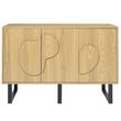 Le buffet Calypso se distingue par son design élégant alliant des formes organiques et des pieds métalliques noirs. Ses portes sculptées avec des formes organiques ajoutent un charme unique. Avec ses grands espaces de rangement, il allie fonctionnalité et esthétique moderne pour sublimer votre intérieur.