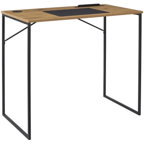 Ce bureau industriel en métal noir sera parfait pour organiser un espace de travail efficace et peu encombrant. Pour le télétravail ou les devoirs, optez pour une touche moderne dans votre espace!Informations sur le bureau industriel:Dimensions: L.90 x l.50 x H.76 cmMatière: métal et MDFPoids: 6.300 kgAvec passe câbles et support de tablette.