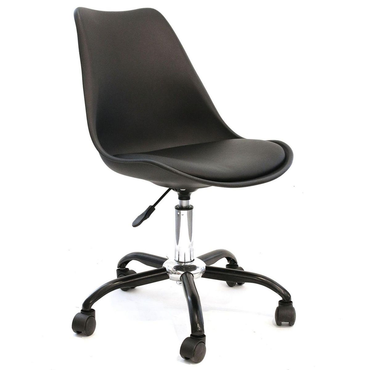 Elégante, cette chaise apportera à votre bureau modernité et sobriété.FICHE TECHNIQUE- Assise de la chaise en PVC.- Pieds en métal.- A roulettes, vous pourrez vous déplacer facilement.- Hauteur réglable.- Idéale pour les petits intérieurs.CARACTERISTIQUES TECHNIQUES- Dimensions : L. 46,5 x l. 58,5 x
