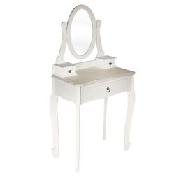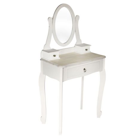 En savoir +Idéale pour vos mises en beauté, cette coiffeuse revisite les altiques dans un style épurée.A la fois miroir et range-bijoux, cette coiffeuse à poser apportera une touche de romantisme et de douceur dans votre chambre ou dans votre salle de bain. Ornée d'un miroir pivotant et de trois tiroirs, vous pourrez à la fois ranger et ordonner vos bijoux et vous préparez en toute tranquillité. Notre Idée Déco : personnalisez-la en accrochant vos plus belles photos sur le miroir.