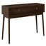 Cette console marron foncé séduit par son style rétro-chic. Avec ses lignes épurées, ses deux tiroirs texturés et ses poignées dorées, elle apporte une touche élégante à une entrée, un salon ou une chambre.Informations sur la console 2 tiroirs marron foncé:Couleur : marron foncéDimensions : L. 100 x H. 80 x P. 35 cmComposition : MDF, pin, panneau de particulePoids : 17.2 kgA monter soi-même