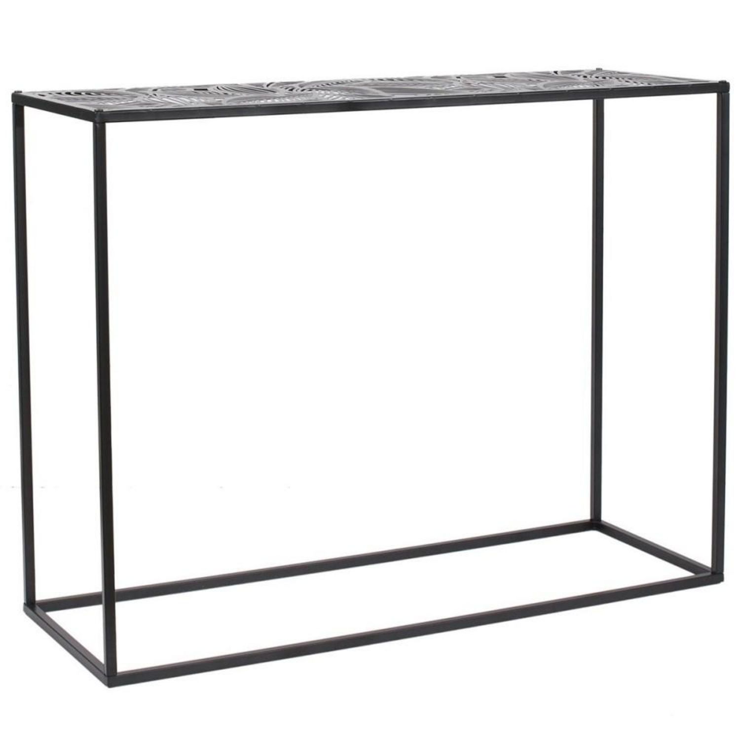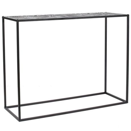 Découvrez cette minimaliste console Havana tout en métal qui prendra place dans votre intérieur. Optez pour cette console et modernisez votre décoration grâce à son design rectangulaire fin avec plateau ajouré tendance.Informations sur la console Havana :Couleur : noirDimensions : L. 100 x H. 77 x P. 35 cmComposition : ferPoids : 4,850 kgA monter soi-même