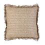 Apportez un peu plus de chaleur dans votre salon avec ce joli coussin à franges au design bord de mer !FICHE TECHNIQUE- Coussin en polyester et jute.CARACTERISTIQUES TECHNIQUES- Dimensions : L. 40 x l. 40 x E. 11 cm.- Poids : 0,44 kg.
