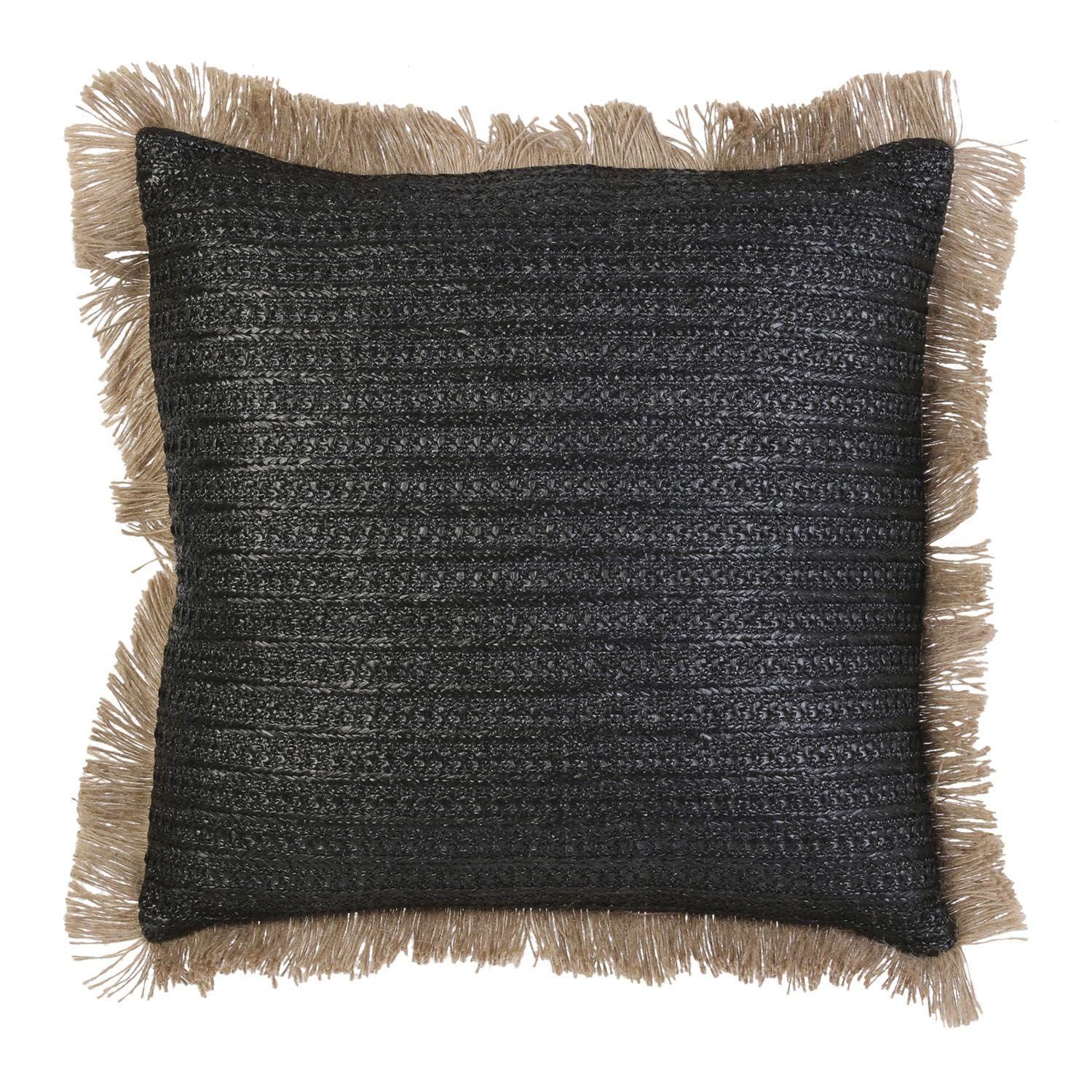 Coussin design bord de mer en jute Raphia - L. 40 x l. 40 cm - Noir